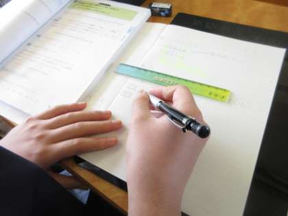 丁寧にノートに書いています。