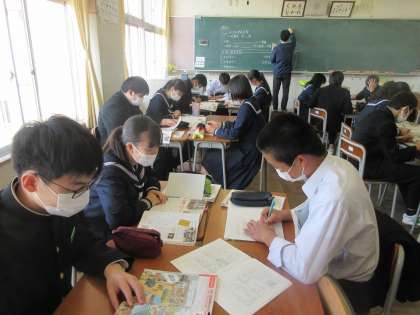 社会の授業です。 大正デモクラシーを学習しました。さすが3年生、「学び合い」は慣れたものです!!