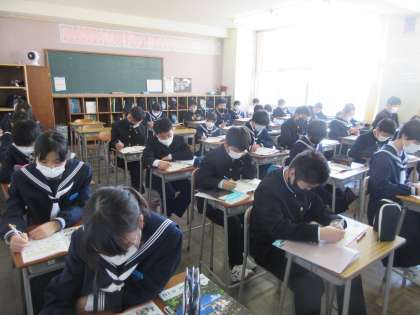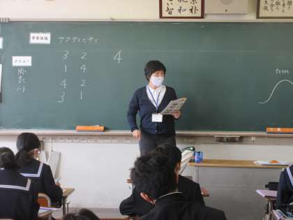 英語の授業です。 アクティビティとして、聞き取りテストを行いました。