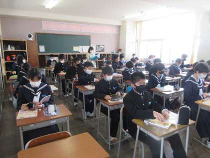技術・家庭科の授業です。 まずは学習用具のチェックです。