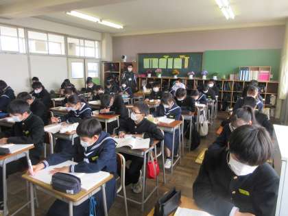 国語の授業です。 「枕草子」春はあけぼのを学習しました。