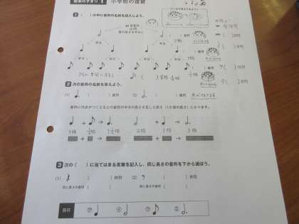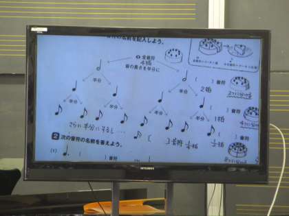 「全音符を二つに分けたから・・・?」 「二分音符!!」「正解!!」