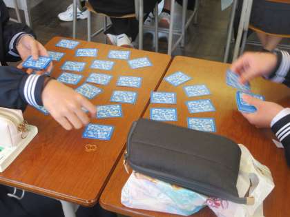 カードを使って、大文字と小文字を組み合わせて覚えます。