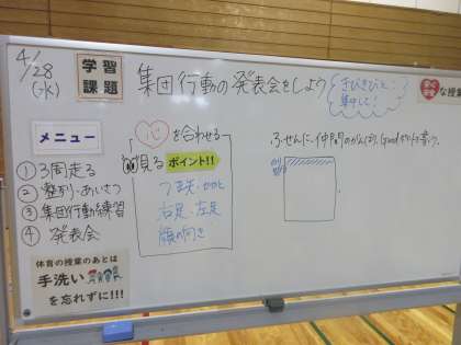 保健体育の授業です。 集団行動の発表会です。まずはチーム決めです。