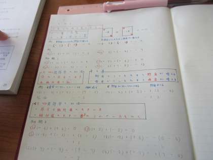 数学の授業です。 異符号の加法を学習しました。
