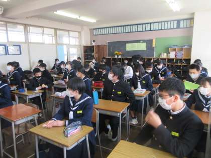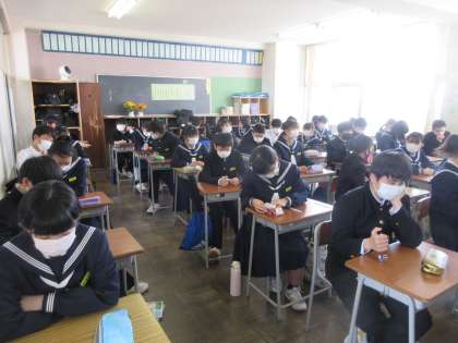 理科の授業です。 元素記号化学式の小テストを行いました。