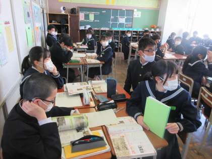 社会の授業です。 今まで学習したことを使って、かるたをつくります。