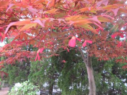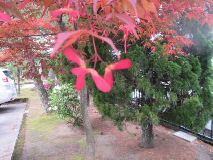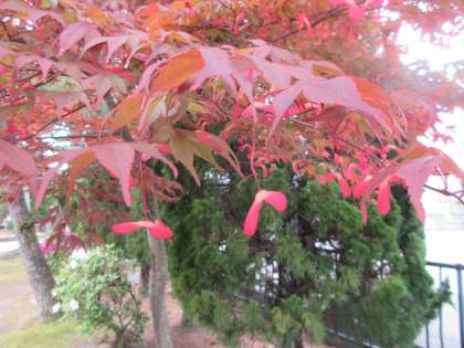 以前花が咲いていましたが、今はプロペラのような実がなっています。