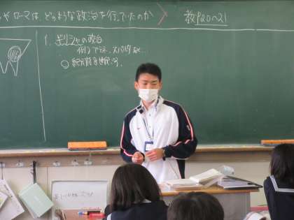 社会の授業です。 古代ギリシャやローマの政治を学習しました。