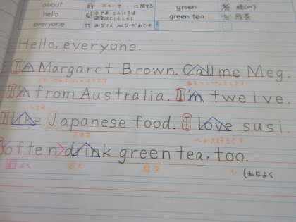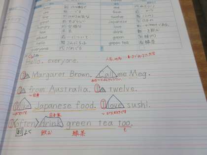 ノートもきれいに書いています。 アルファベットも上手です!!