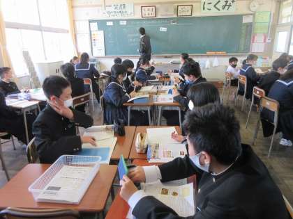 社会の授業です。 古代ギリシャやローマの政治を学習しました。