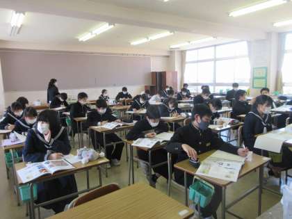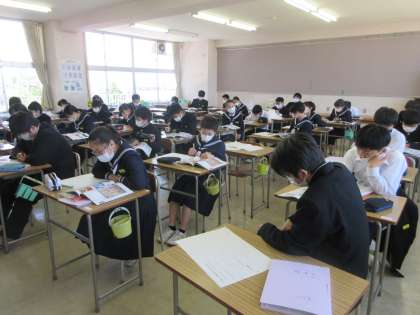 美術の授業です。 メッセージが伝わるポスターをつくります。