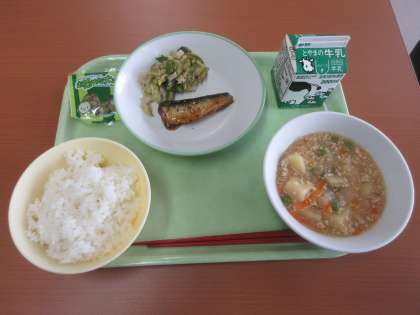 今日の給食 公開日 2021/05/12 更新日 2021/05/12 給食 そぼろに煮は、野菜や肉のうまみが、ぎゅーっとつまっています!! ごはん 牛乳 いわしの生姜味 野菜ソテー じゃがいものそぼろ煮 抹茶大豆