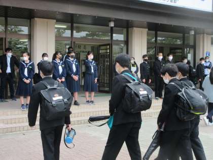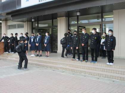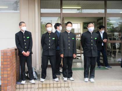 執行部に野球部が加わって、あいさつ運動を行いました。
