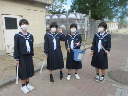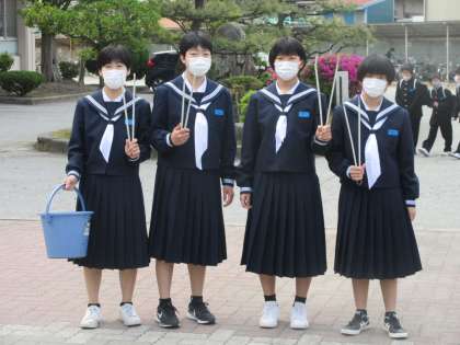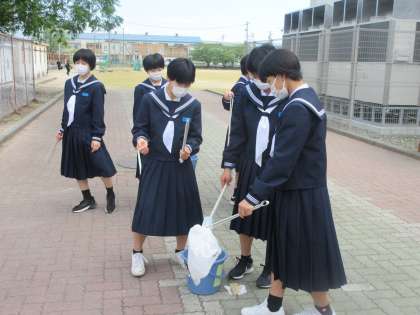 女子バレーボール部の1年生が、ごみ拾いを行いました。 継続は力なり!!です。ありがとう!!