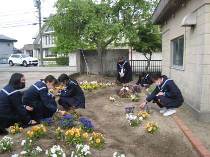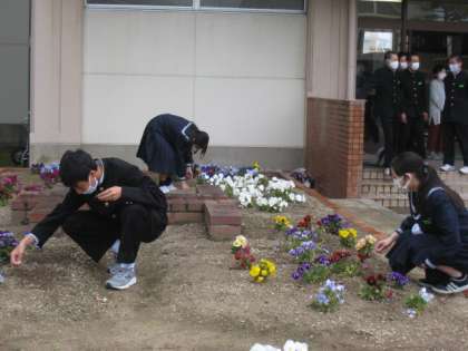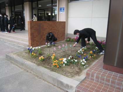 元気に花が咲く花壇、美化・福祉委員とボランティアのみんなのおかげです。