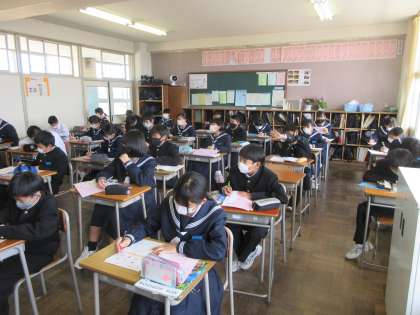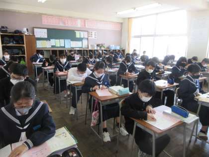 英語の授業です。 確認のプリントを行いました。