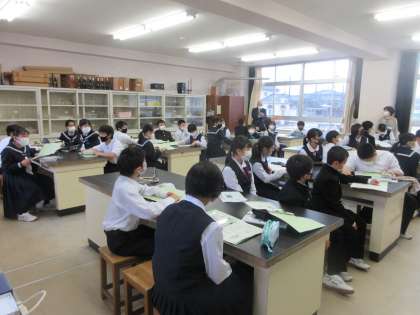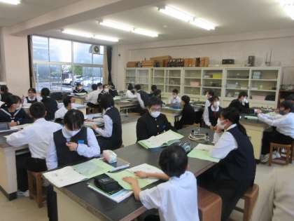 理科の授業です。 双眼実体顕微鏡の使い方を学習しました。