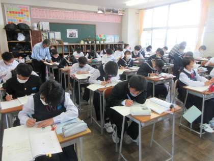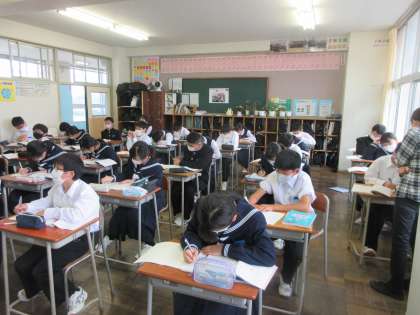 数学の授業です。 正負の数の加法と減法の混じった計算を学習しました。