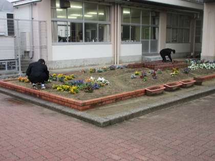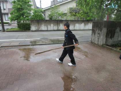 水たまりの水を一生懸命にはき出しています。 黙々と草むしり。 ありがとう!!
