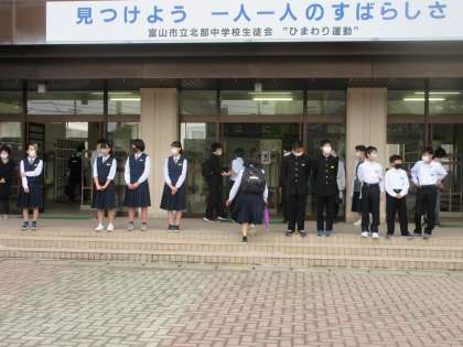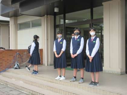 執行部の生徒が、毎日あいさつ運動を行っています。 笑顔とさわやかな声が、気持ちいいです!!