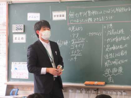 理科の授業です。 無セキツイ動物の特徴を学習しました。