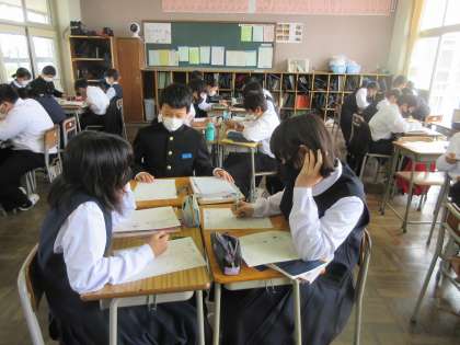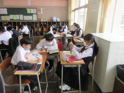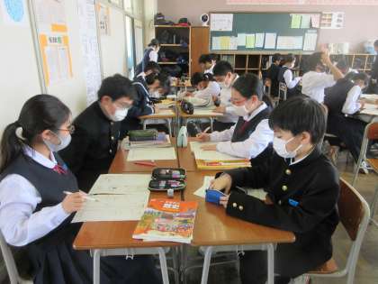 社会の授業です。 中間評価の見直しです。