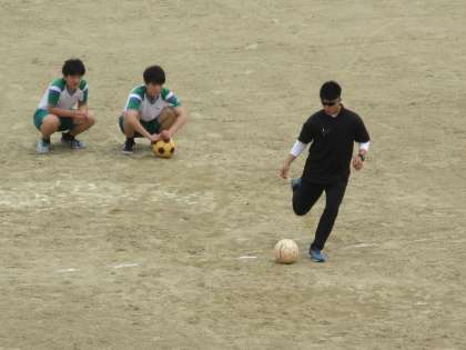 いろいろなキックを練習しました。 「こうやって、蹴るんだよ!!」 「ナイスキックで〜す!!」