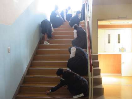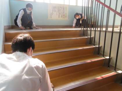 今日は、階段を中心に、汚れを取りました。 たくさんの生徒が参加しました。