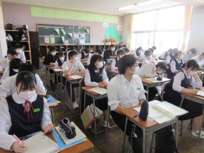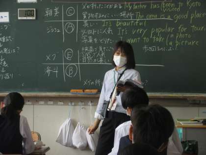 英語の授業です。 ディスカッションを聴いて、誰の案がいいか考えました。