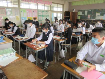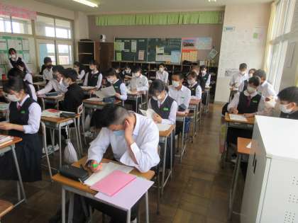 国語の授業です。 中間評価の解説と、見直しの方法を学習しました。