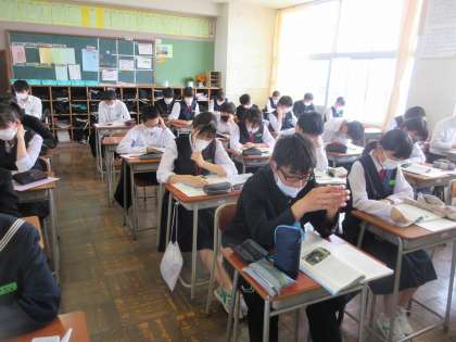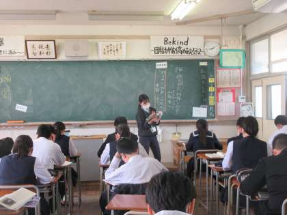国語の授業です。 「作られた『物語』を超えて」を一文ずつ交代で読みました。