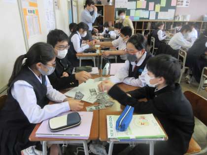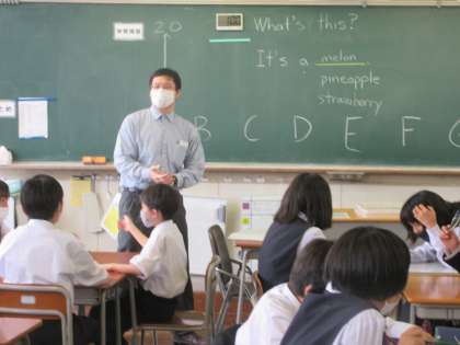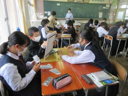 英語の授業です。 ALTのレイ先生とクイズをしました。