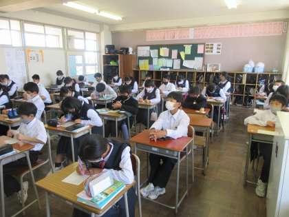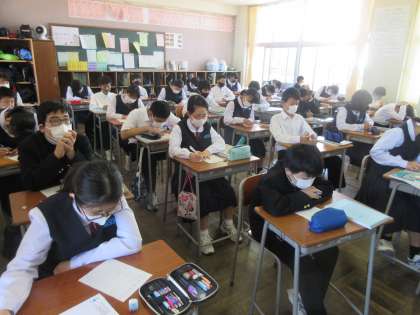 数学の授業です。 復習の小テストを行いました。 「余裕、余裕!!」