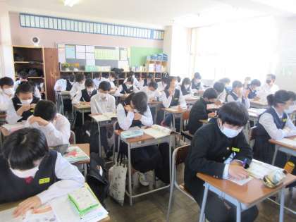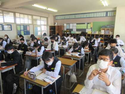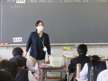 理科の授業です。 2種類の物質が結び付くとき、それぞれの物質の質量にはどのような関係があるかを学習しました。