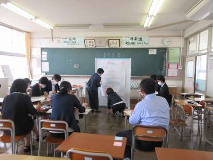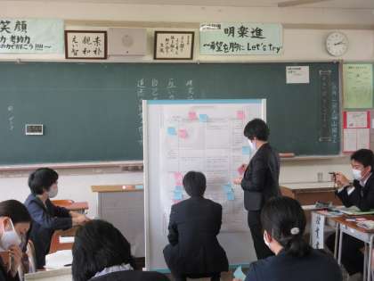 今日の授業等について、各学年に分かれて、研修会を行いました。
