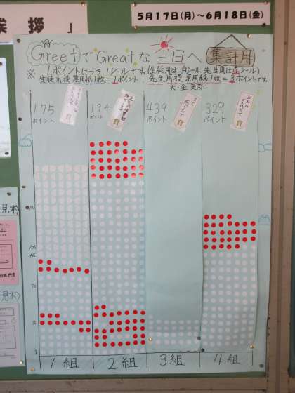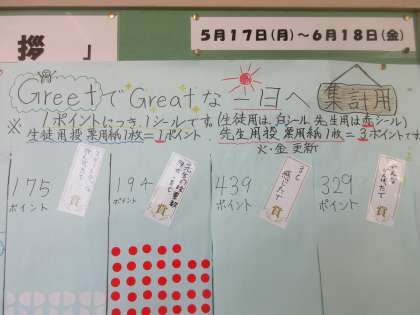 結果発表!! どのクラスも頑張りました。今後も、さわやかな挨拶を心がけましょう!!