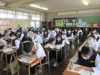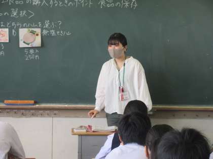 技術・家庭科の授業です。 加工食品を購入するときのポイントを学習しました。