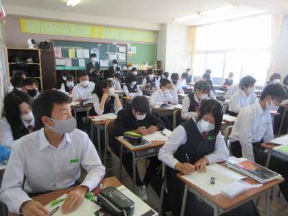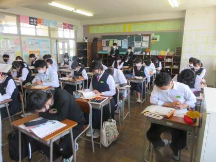 理科の授業です。 復習のプリントに取り組みました。