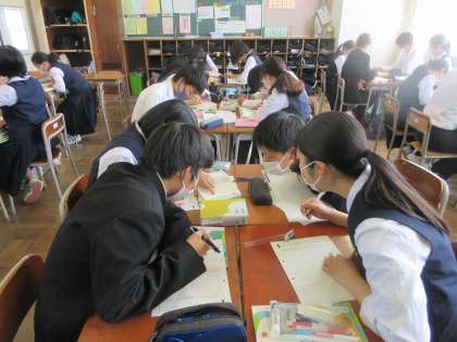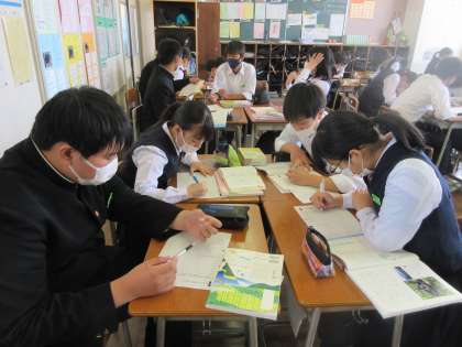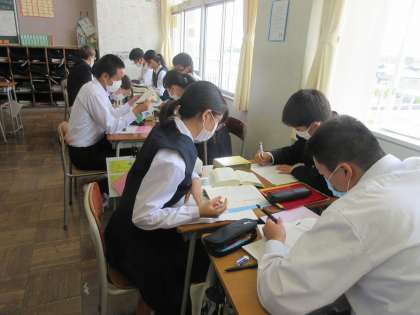 国語の授業です。 「作られた『物語』を超えて」を学習しました。 まずは語句の確認です。