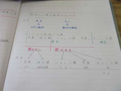 理科の授業です。 動物の分類を復習しました。