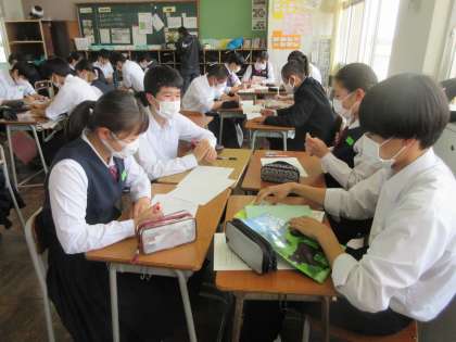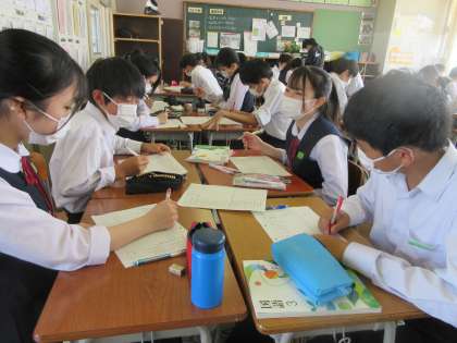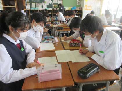 国語の授業です。 漢字テストを行いました。その答え合わせです。