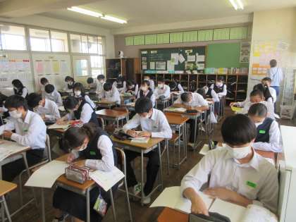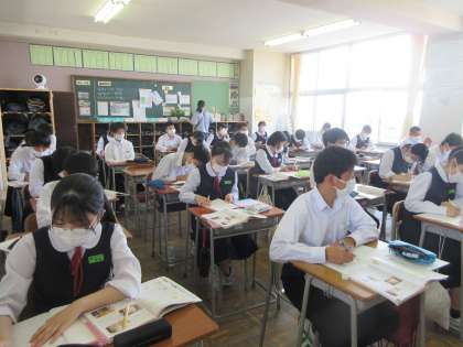 技術・家庭科の授業です。 幼児の心の発達を学習しました。