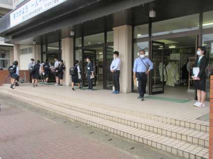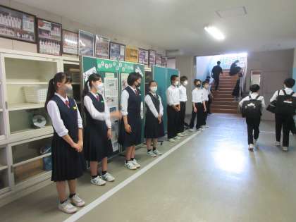 執行部は、廊下で行いました。 元気な声が、校舎内に響いています!!