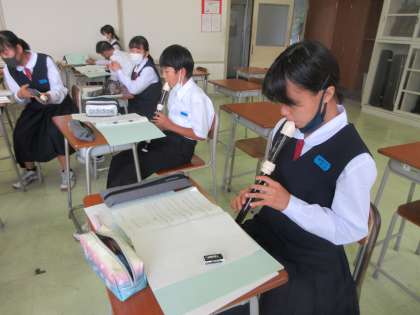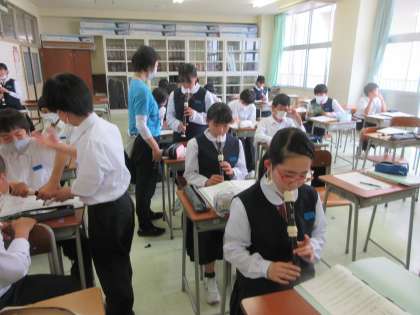 順番を待つ間は、アルトリコーダーの練習です。 「次、私だぁ・・・。緊張するぅ・・・。」