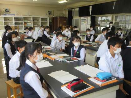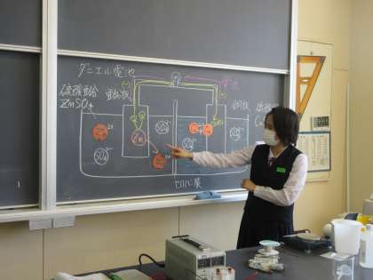 理科の授業です。 ダニエル電池の仕組みを学習しました。