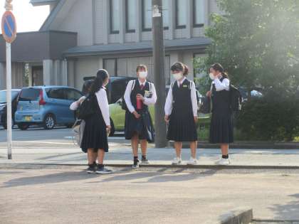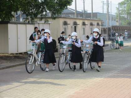 部活動を終え、一斉に下校します。