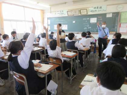 たくさん手があがります!! かっこいいぞぉ、1−4!!