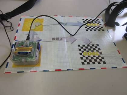 「え〜っと、スタート、前進、右に回転、そしてストップと!!」
