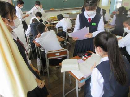 ワークシートを使って、最後のまとめです。 「おっ、ここ一緒の意見だぁ!!」